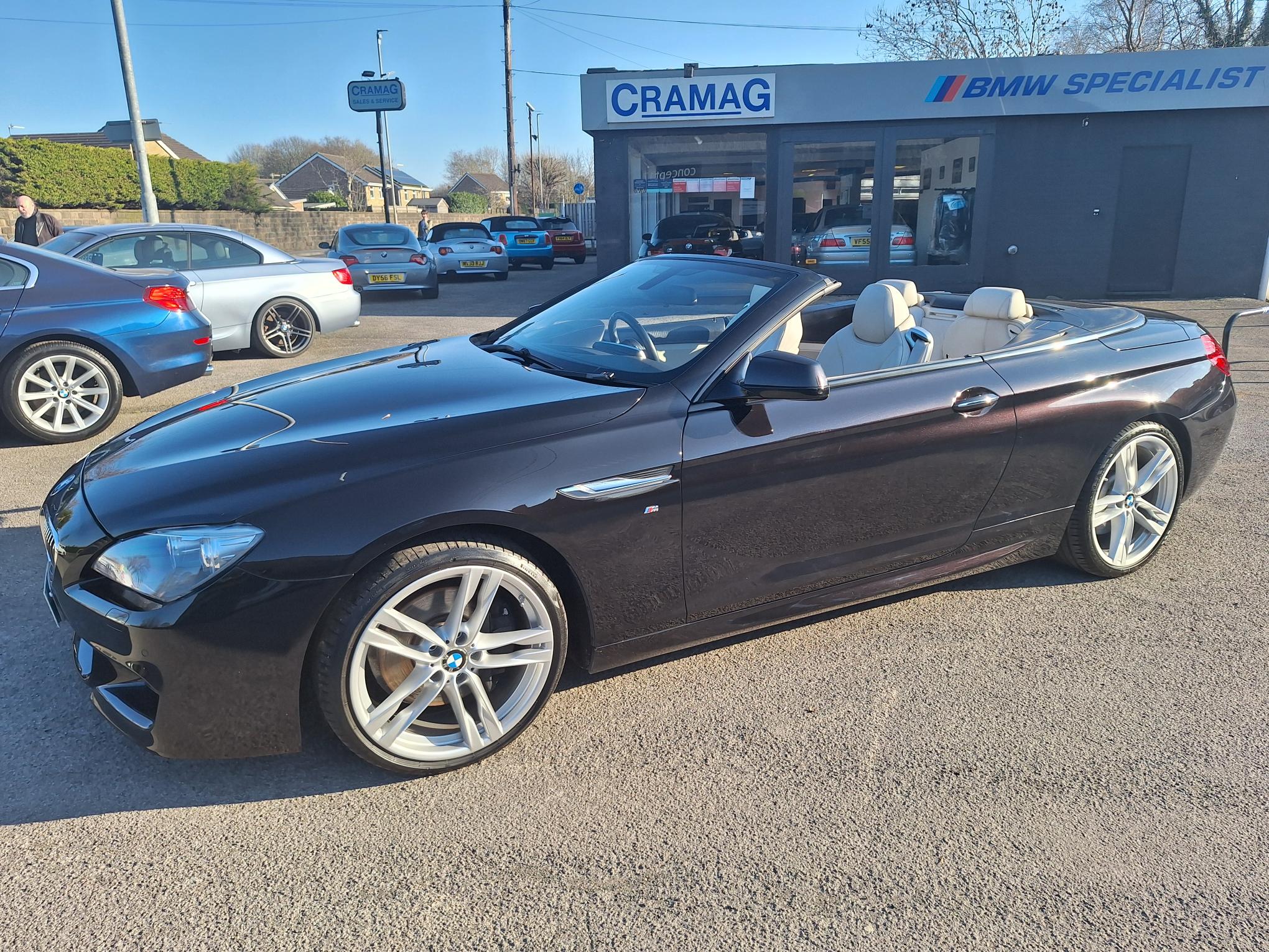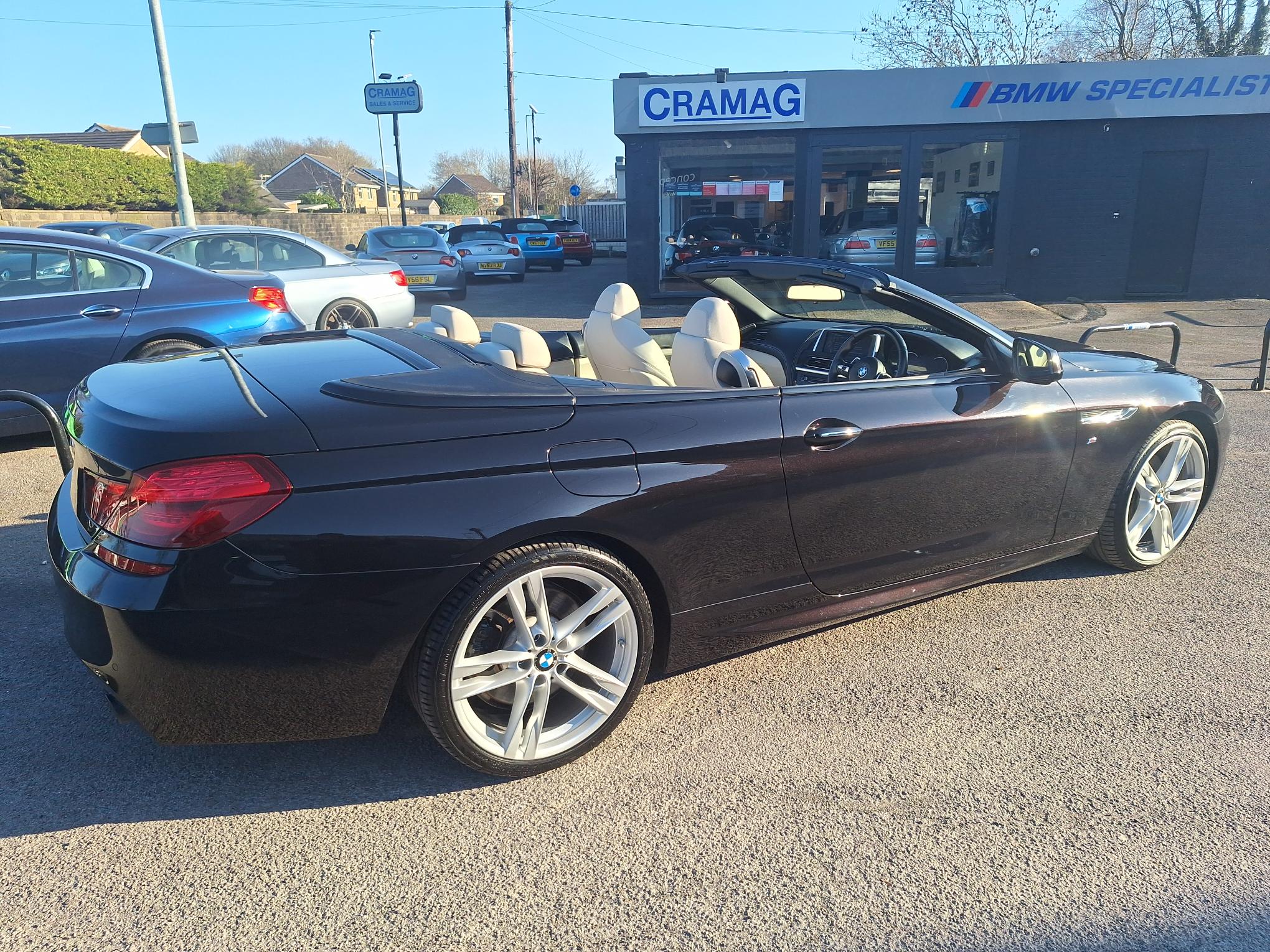 Individual Ruby Black, with Ivory White Dakota Leather, Electric Heated Sport Seats, with Drivers Memory, and Lumbar Support, Heated Steering Wheel, Climate Air Conditioning, Fully Electric Roof, BMW PROFESIONAL SAT NAV, I Drive, Bluetooth Phone, DAB Digital Radio, Harman/Kardon Hi Fi System, Rear Camera, Electric Windows, Remote Central Locking, Power Steering, ABS, Traction Control, On Board Computer, Parking Sensors Front and Rear, Leather Instrument Panel, Dark Grey Popular Wood Interior Trim, HUD (Head Up Display), M Sport Plus Package, Factory M Sport with 20" 373M Alloys, Great Specification, STUNNING!!!