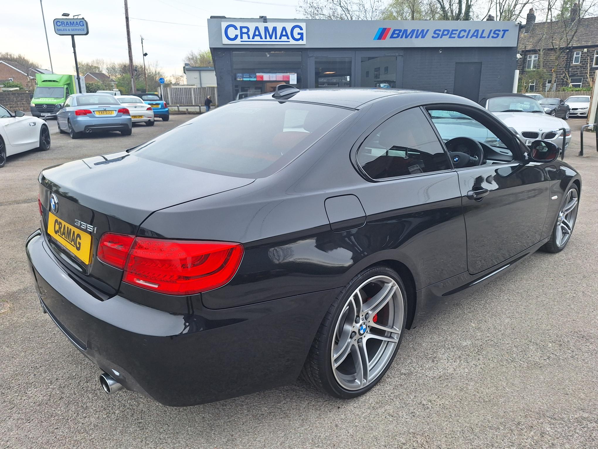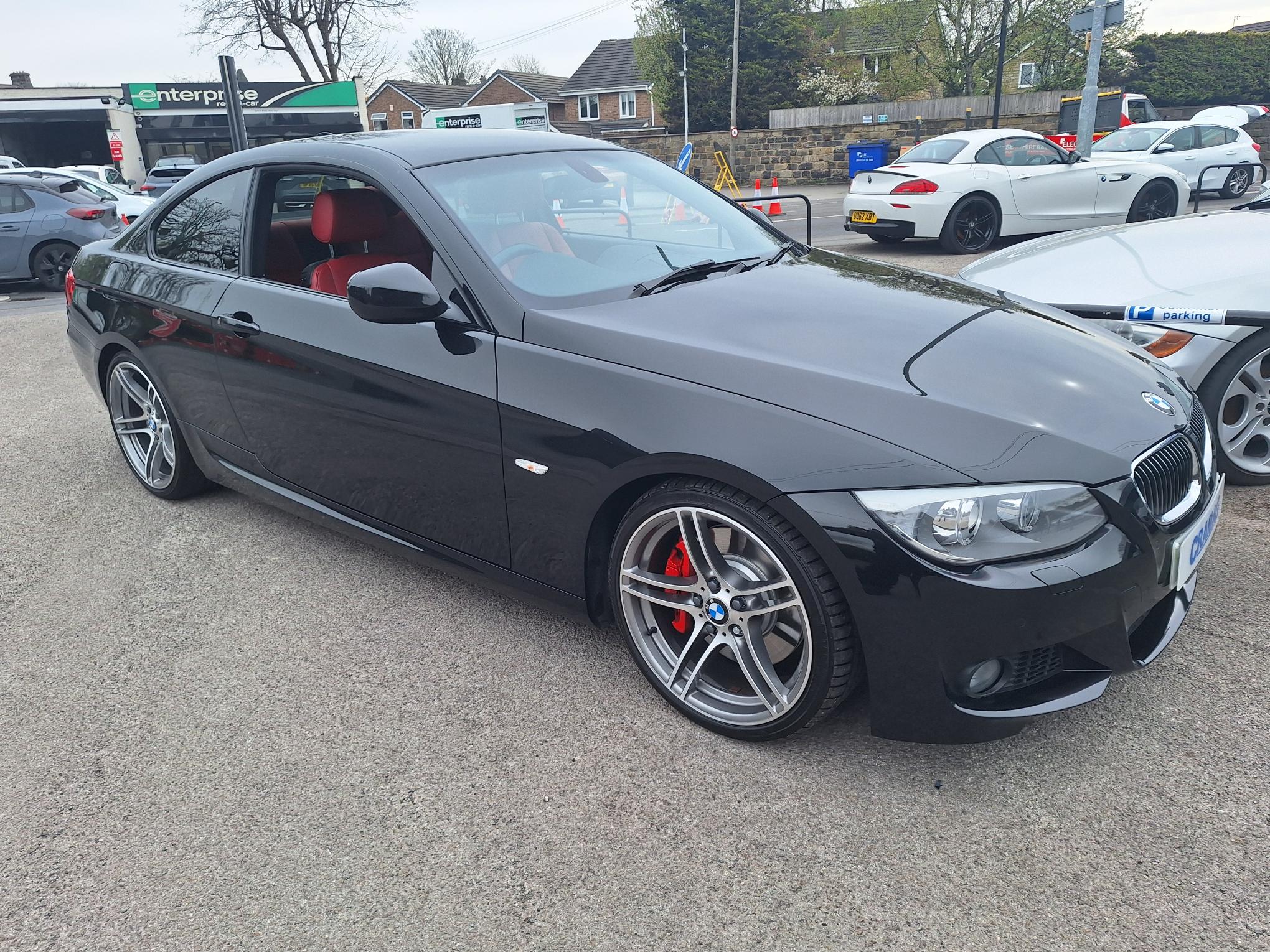 Metallic Black, with Coral Red Dakota Leather, Electric Heated Sport Seats, with Drivers Memory, Air Conditioning, BMW PROFESSIONAL SAT NAV, I Drive, Bluetooth Phone, USB Audio, Voice Control, Electric Windows, Remote Central Locking, Power Steering, ABS, Traction Control, On Board Computer, Parking Sensors Front and Rear, Cruise Control, Sun Protection Glass, Brushed Aluminium Interior Trim, Xenon Headlights, Rain Sensor, Automatic Headlights, Factory M Sport with Upgrade 19" 313M Alloys, with Bridgestone Run Flats, Full BMW Service History (8 Services), A Very Rare Low Mileage N55 coupe